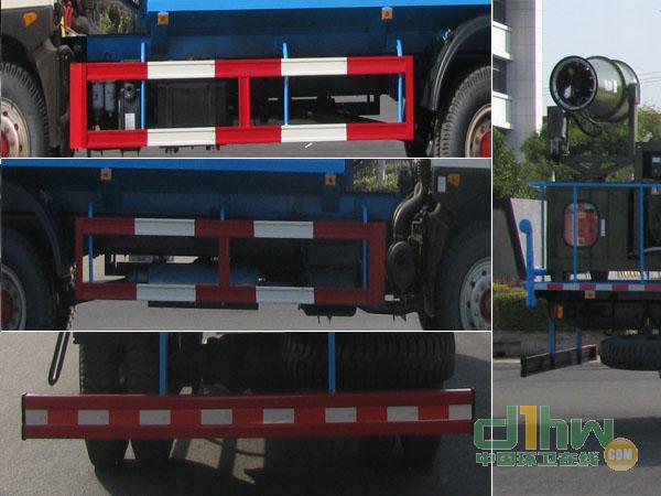 運輸介質:抑塵劑;密度:800千克/立方米,罐體有效容積:9.58立方米.當軸距為3950(mm)時,罐體外形尺寸(長度×長軸×軸)(mm):3600×2250×1500,對應后懸:2560(mm).當軸距為4500(mm)時,罐體外形尺寸(長度×長軸×軸)(mm):4000×2200×1500,對應后懸:2870(mm).防護材料:Q235碳鋼,連接方式:左右側面及后下部防護均采用焊接連接,后部防護裝置斷面尺寸(寬×高)60×120(mm),后部防護離地高度(mm):450.選裝側部結構及罐體前部平臺.安裝具有衛星定位功能的行駛記錄儀.ABS的型號:JABS,生產廠家:焦作博瑞克控制技術有限公司.