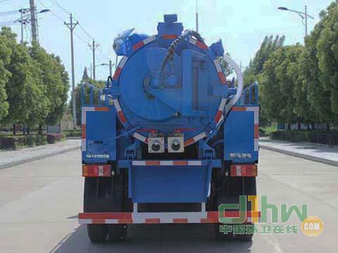 污水罐有效容積7.9立方米,罐體外形尺寸(直徑×直段長)(mm):1600×3600,選裝污水罐外形尺寸(直徑×直段長)(mm ):1700×3400,,運輸介質為液態污物,介質密度為800千克/立方米。水罐是由2個相同的梯形罐體組成,單個罐體外形尺寸(上底+下底)×高×長(mm):(767+563)×1255×2900,有效容積3.65立方米。清洗吸污兩種功能不同時使用,兩個罐體不能同時滿載。側面防護裝置材料:3A21,連接方式:橫豎桿之間螺栓連接,與車架之間螺栓連接。后下部防護裝置材料為:Q235-A,截面尺寸為:140×58(mm),選用軸距為4700mm和4500mm的底盤。主要專用裝置為真空抽吸及高壓清洗系統。隨底盤選裝駕駛室前臉擾流罩.選裝前霧燈.駕駛室頂部裝飾燈為選裝件.選裝臥鋪側窗裝飾板。選裝盤式吸污臂。