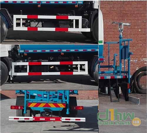采用自吸式雙級離心泵,效率高,揚程大,水泵由底盤發動機取力傳動;自吸管路采用了專門的快速接頭及止回閥,自吸高度6.5m,水平自吸距離>10米(選配);具有新穎的前沖(水)、后灑(水)功能,前后采用不同特點的噴嘴,后噴嘴適應于灑水降溫,前噴嘴沖洗壓力大,可一次沖洗6條車道;前沖洗嘴由電、氣控制,操作方便靈活;水罐容積大,工作時間長;具有噴霧降塵功能;具有輔助消防功能、自吸功能(選配);可選裝綠化澆灌功能。