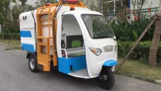 雙油缸鉤臂式翻桶機構,滿足120、240升等各種垃圾桶自卸作業;燈光及信號:前照燈、前后轉向燈、側轉向燈、組合后尾燈均為LED、并設有電喇叭及倒車蜂鳴器;帶倒車影像,提升環衛作業倒車安全;采用一體式動力單元,動力單元電機滿足長時間工作,油泵噪音≤100db;箱體:后門往一側270°打開或上開,配有鎖緊裝置,保證垃圾傾倒時,后門能自鎖;廂蓋采用左右背對上開式,帶氣彈簧。箱體尾部呈拋物線式揚起,有效保證垃圾中殘存的液體在運輸過程中不會產生二次拋灑;箱體底板采用1.5毫米厚不銹鋼板,防止垃圾腐蝕;前輪400-12、 后輪450-12載重型鋼絲胎;駕駛室采用鋼制結構,安全駕駛室采用模具沖壓成型冷板材質,雙前一體化嵌入式組合大燈,大燈內藏式方向燈方向燈必須是LED、凸透鏡式大燈,整體式塑料儀表工作臺,帶雨刮器,警示燈,收音機,駕駛室內腳踏板采用防滑、防銹花紋鋁板;制動系統采用油剎制動,手制動采用鋼絲拉線結構;采用載重無鏈條一體化后橋:驅動橋半軸直徑≥28mm,驅動橋半軸軸管直徑≥70mm,液壓鼓式剎車,橋包殼體與半軸軸管為分體可拆裝式,橋包殼體材料為鑄造式,帶高低檔,載重爬坡使用低速擋;采用全浮式五孔車橋,確保載重安全;前減震采用內外簧油壓伸縮管式前減震器,減震直徑不低于43mm;后板簧采用主輔彈簧鋼板十一片片帶輔簧支架。
