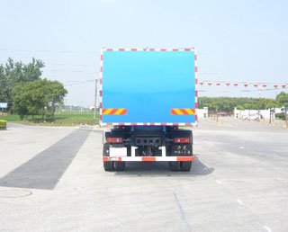 全自動封閉廂式垃圾車廂,載運塊狀垃圾專用;側防護材料:鋼材Q235,連接方式:螺接;后防護材料:鋼材Q235,連接方式:焊接;后防護斷面尺寸100×50(mm),離地高度:400mm。發動機型號:SC28R125Q5A