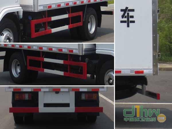 廂體頂部封閉,不可開啟;選裝其它廠家功率相當的制冷機組;選裝側門及側門位置;選裝液壓升降尾板(收起狀態水平長度為290mm);運輸介質:感染性物質,診斷樣品,醫院診斷廢棄物,類項號:6.2,6.2,6.2;發動機與油耗申報值(L/100km)對應關系:4KH1CN5HS/12.4;該車為危險品貨物運輸車;僅采用前輪盤式制動器,前置排氣管,子午線輪胎,限速裝置的底盤,限速80km/h;該車安裝具有衛星定位功能的行駛記錄儀;ABS型號:APG3550500A4,生產廠家:浙江亞太機電股份有限公司;側面防護及后下部防護裝置材料材質:Q235,連接方式:焊接加螺栓連接;后下部防護裝置斷面尺寸(寬×高):50×100(mm),離地高度:460mm.
