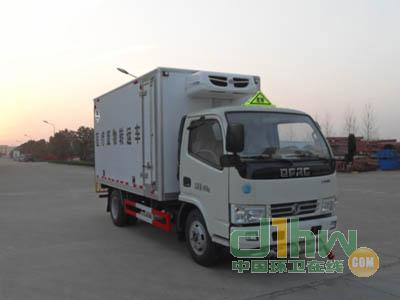 隨底盤選裝駕駛室;廂體頂部封閉,不可開啟;選裝其它廠家功率相當的制冷機組;選裝側門位置及不帶側門;選裝液壓升降尾板(收起狀態水平長度為290mm);運輸介質:感染性物質,診斷樣品,醫院診斷廢棄物,類項號:6.2,6.2,6.2;該車為危險品貨物運輸車;僅采用前輪盤式制動器,前置排氣管,子午線輪胎,限速裝置的底盤,限速80km/h;該車安裝具有衛星定位功能的行駛記錄儀;所有發動機對應油耗值均為12.5L/100km;ABS廠家及型號:襄陽東風隆誠機械有限責任公司/ABS/ASR-24V-4S/4M;側面防護及后下部防護裝置材料材質:Q235,連接方式:焊接加螺栓連接;后下部防護裝置斷面尺寸(寬×高):40×100(mm),離地高度:490mm.