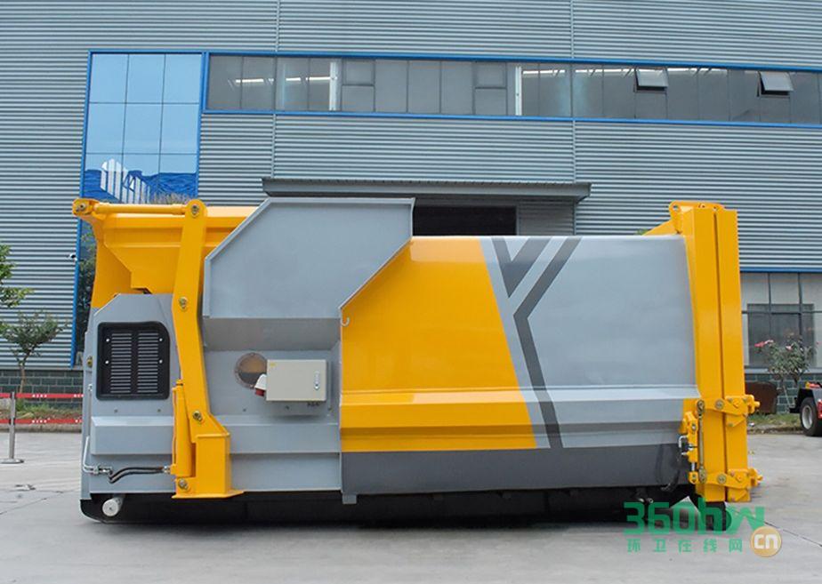 翻斗型移動式垃圾壓縮站由壓縮腔,裝載箱體、后門、翻轉斗、液壓系統和電氣系統等組成。適應城市、鄉鎮區域垃圾轉運站點垃圾量集中的情況下使用,適用的前端收集工具有:中小型收集車、電動三輪車等。 移動式垃圾壓縮機采用水平壓縮技術,將松散垃圾壓縮、稅水、減容后通過車廂可卸式垃圾車進行轉運。該模式布局緊湊占地