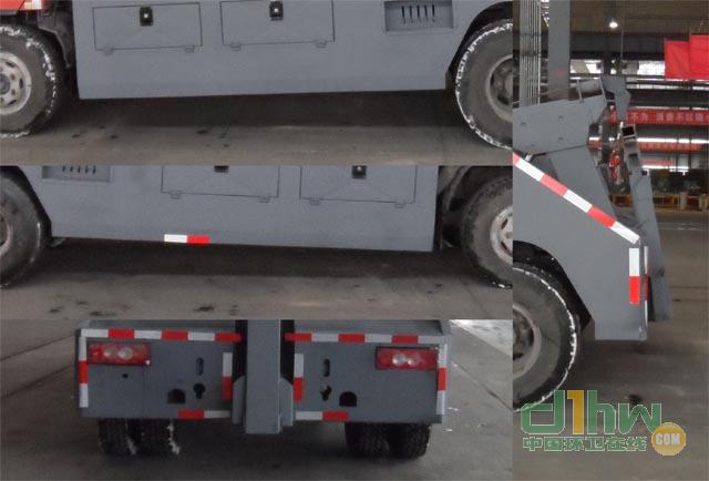 隨底盤選裝側拉門、普通前大燈。選裝發電機及發電機艙門。選裝車頂前額位置凸臺,車頂可單獨或部分選裝設備平臺、換氣扇、空調、升降照明燈、場地照明燈、氣象儀。不裝發電機及蓄電池時,整備質量為3450kg。不裝車頂設備高2595mm,選裝車頂設備平臺高2800mm,選裝車載空調高2960mm,選裝升降照明燈(帶攝像頭)高3130mm,選裝升降照明燈(無攝像頭)高3015mm,選裝氣象儀高3490mm。后側窗及尾門窗可全部或部分選裝盲窗,選裝尾門左側或右側位置爬梯。車身一側或兩側選裝玻璃上掀窗或盲窗上掀窗,車頂一側或兩側選裝遮陽蓬。裝備檢測工作桌、供電系統、檢測設備等專用裝置。