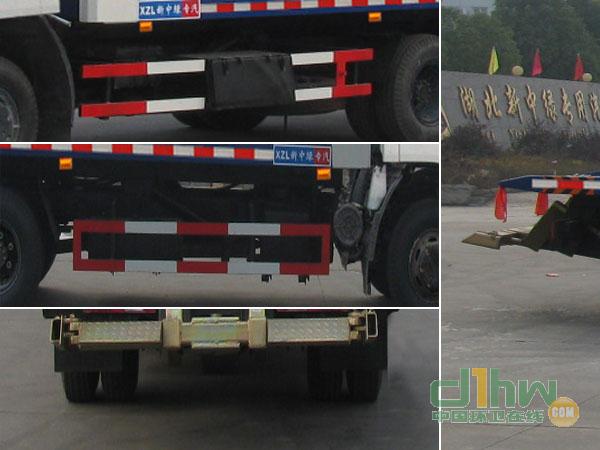 托舉質量:3180kg,側防護材料為Q235,連接方式為連接支架固焊在付車架大梁上.后防護由專用裝置替代.只測離地高為:300(mm).ABS系統型號:VIE ABS-II,ABS系統生產廠家:浙江萬安科技股份有限公司.
