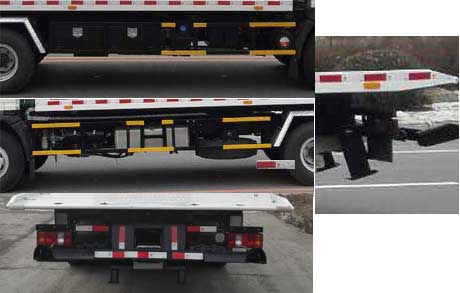 隨底盤選裝駕駛室。選裝擺臂平板裝置和后欄板.ABS系統型號:VIE ABS-II,ABS系統生產廠家:浙江萬安科技股份有限公司。托舉質量:3000kg.后伸230mm.側防護采用冷彎型鋼/Q235B,螺栓連接。車輛后部為作業裝置。選裝PQL型平板裝置.