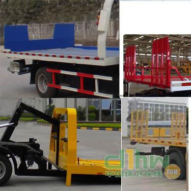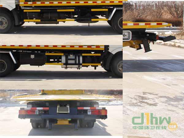 該車用途為道路故障車輛、城市違章車輛及搶險救援等;主要裝置為托臂、取力器、液壓油缸組成。選裝擺臂平板裝置和后欄板.ABS系統生產廠家:長春科密汽車制動有限公司,型號:CM4XL。托舉質量:1945kg.側防護采用冷彎型鋼/Q235B,螺栓連接。車輛后部為作業裝置。