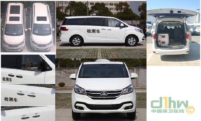 車內裝配有檢測臺,電源系統,水系統等.選裝車頂換氣扇,選裝車頂照明燈.整車高度1928mm,選裝換氣扇,照明燈高度2098mm.隨底盤選裝:1.可選裝:輪胎,裙邊尾翼,擾流板,前部天窗,后部全景天窗,鹵素前照燈,鋼輪圈,門把手鍍鉻裝飾條,側窗后部黑色貼膜,淺色玻璃,與車身不同色的門把手,與車身不同色的保險杠,與車身不同色的后視鏡,左側移門,LED后組合燈,投射前大燈,無鑰匙進入系統門把手.該車可選裝帶衛星定位功能的行駛記錄儀及ECU限速裝置(限速100km/h)2.可選不裝:前照燈清洗裝置,前霧燈,后雨刮,側窗鍍鉻裝飾條,鍍鉻后牌照裝飾條,鍍鉻前格柵.3.選裝215/70R16,215/70R16LT輪胎對應總質量2800kg,選裝225/55R18輪胎對應總質量2680kg,4.ABS型號:ABS 9,ESP9;ABS生產企業:博世汽車部件(蘇州)有限公司.5.發動機最大凈功率值:160kW.