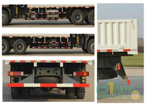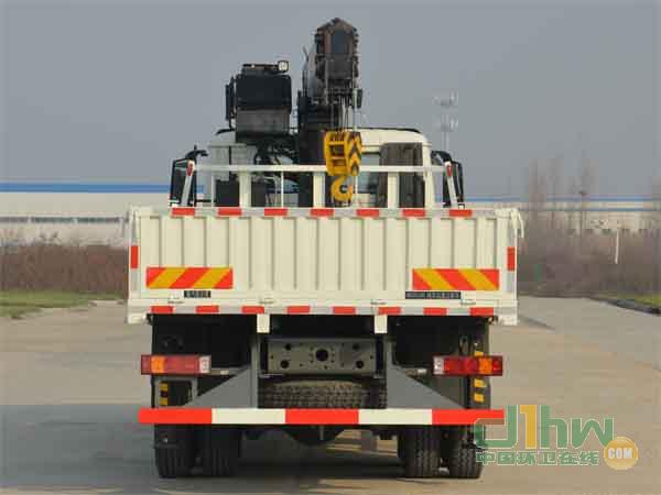 該車上裝隨車起重機,型號/質量(Kg)/最大起升載荷(Kg)為:ST260/4080/10000,ST220/4080/8000;側面及后下部防護裝置材料均為Q235A,均為螺栓連接,后下部防護裝置斷面尺寸為100mm×50mm,離地高度為540mm;發動機油耗值均為35.1L/100km;ABS型號為4460046300,生產廠家為威伯科汽車控制系統(中國)有限公司;安裝帶衛星定位功能的行駛記錄儀;選裝貨箱欄板結構,可不選裝高空座椅操作形式,可不選裝液壓油箱在隨車起重機轉臺上,選裝引起的質量變化在3%以內。