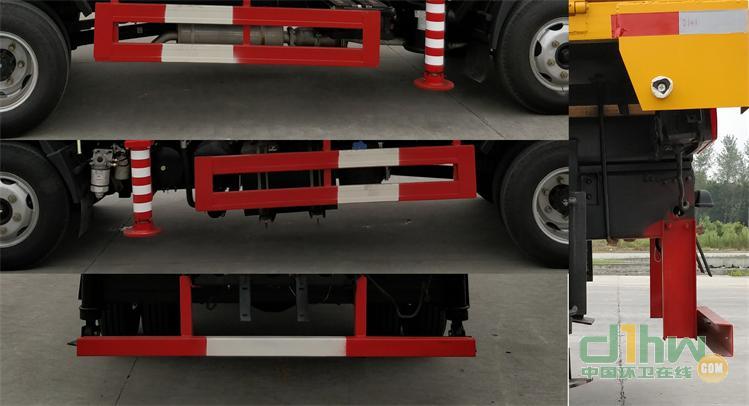 直臂式吊機型號/吊機質量(Kg)/最大起升載荷(Kg)/整車整備質量(Kg)/額定載質量(Kg)分別對應為:EX/1450/750/3825/540,EY/1250/700/3650/715;側防護與貨箱間采用螺栓聯接,材質:Q235B,后防護(材質:Q235B)與底盤縱梁后部采用螺栓聯接,斷面尺寸:100×42mm,離地高度340mm.ABS型號:ABS/ASR-24V-4S/4M,廠家:襄陽東風隆誠機械有限責任公司.發動機型號及油耗值(L/100km)為: YN27CRE1/ 12.9, 4F20TCIE5/12.8.僅選用7.50R16 8PR,7.50-16 8PR,7.00R16 8PR規格的輪胎.僅采用3300mm軸距的底盤