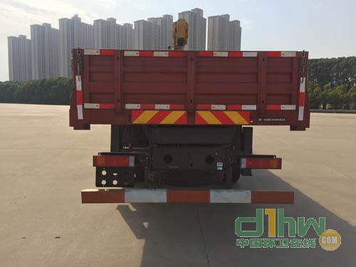 隨底盤選裝導流罩,選裝同系列高頂駕駛室,選裝燈具保險杠等新風格;選用2100+4850,2100+5250,2150+5050mm軸距,選裝貨箱箱板,后門結構.選裝不同的上,中座椅操作,選裝直臂式或折臂式吊機.直臂式吊機:型號/吊機重量(kg)/最大起升載荷(kg)/.整備質量(kg)/載質量(kg)分別為:1,(SQS-10,SPS25000,QYS-10)/4300/10000/14180/10625 (3人),10690(2人);2,(SQS-12,SPS30000,QYS-12/4800/12000/15530/ 9275 (3人),9340 (2人);折臂式吊機:(SQZ-10,SPK23500,QYS-10Z)/4300/10000/14180/10625 (3人),10690(2人).外形尺寸/軸距/前懸/后懸對應關系(mm):11200/2100+4850/1250/3000,11950/2150+5050/1250/3500,12000/2100+5250/1250/3400, 11200/2100+4850/1450/2800,11950/2150+5050/1450/3300,12000/2100+5250/1450/3200,防護裝置:材料Q235,螺栓連接;后下部防護裝置:斷面尺寸120X60mm,離地高度500mm.安裝具有衛星定位功能的行駛記錄儀.ABS型號為3631010-C2000,生產廠家為東科克諾爾商用車制動系統(十堰)有限公
