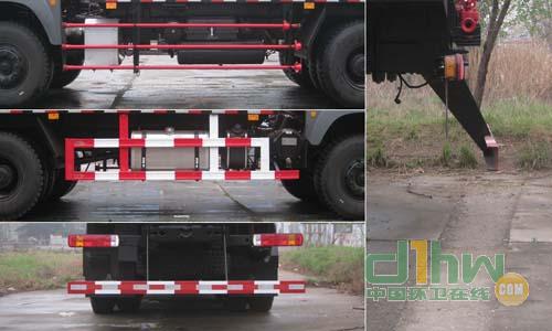 油田專用作業車,由三缸柱塞泵、車載特種鍋爐等組成,用于油田洗井靖蠟作業。可選裝功能參數相同的XJⅡ或XJⅢ三缸柱塞泵,裝XJⅡ泵時總質量21490、軸荷5180/8155/8155、整備質量21360;裝XJⅢ泵時總質量20730、軸荷4960/7885/7885、整備質量20600。可選裝983D,TM1200-1,DMCT1000三種反光標識和選裝DA-32a、DA-32b和VCDM-3兩種后尾部標志板,選裝時固定位置相同,對外形無影響。僅用軸距(mm):4450+1450。右側面及后下部防護裝置材質為Q235A,均為螺栓連接,后下部防護截面為矩形,截面尺寸(mm):120×53,離地高度:500mm。ABS生產廠家:東科克諾爾商用車制動系統(十堰)有限公司,ABS型號:3550D-1010。