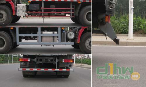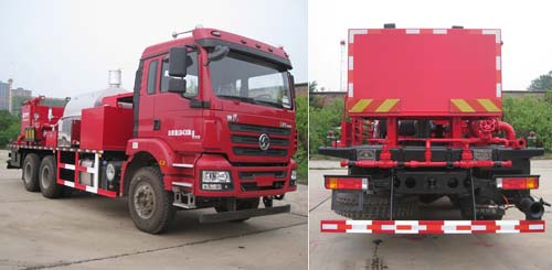 該車為油田專用作業車,由臺板、三缸柱塞泵、車載特種鍋爐等組成,用于油田洗井、清蠟等作業。選裝不同連接方式的水路系統。隨底盤選裝駕駛室準乘人數2人或3人時,總質量分別為18430千克和18495千克。隨底盤選裝同系列駕駛室、前面罩、遮陽罩、保險杠。可選裝983D,TM1200-1,DMCT1000三種反光標識和選裝DA-32a、DA-32b和VCDM-3兩種后尾部標志板,選裝時固定位置相同,對外形無影響。僅用軸距(mm):4375+1400。右側面及后下部防護裝置材質為Q235A,均為螺栓連接,后下部防護截面為槽形,截面尺寸(mm):120×53,離地高度(mm):495。ABS系統生產廠家: 西安正昌電子有限責任公司,廣州市科密汽車制動技術開發有限公司,浙江萬安科技股份有限公司,ABS系統型號:ZQFB-V,CM4XL-4S/4K,VIE ABS-Ⅱ。