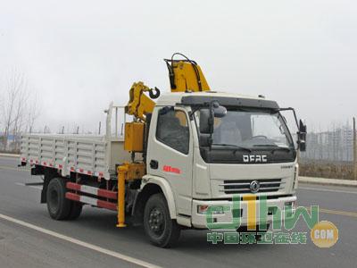 該車上裝選裝折臂式吊機;吊機型號,質量,最大起升載荷,整備質量,額定載質量分別對應為:SQ3.2S:1150Kg/3200Kg/4850Kg/3230Kg;SQ3.2Z:1080Kg/3200Kg/4780Kg/3300Kg;后防護材料為Q235,連接方式:用結構連接件固焊在主車后端,后部防護裝置斷面尺寸(寬×高)60×120(mm),后部防護離地高度:400(mm).隨底盤選裝駕駛室.ABS型號:ABS/ASR-24V-4S/4M,廠家:襄陽東風隆誠機械有限責任公司.