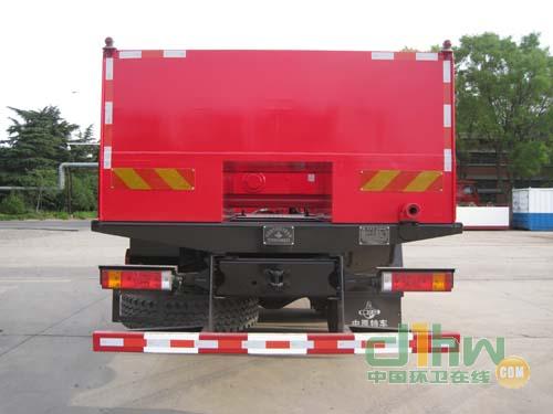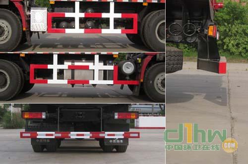 該車為油田作業車,由三缸柱塞泵、供液箱等組成,主要用于油田洗井、試壓等作業。隨底盤選裝駕駛室準乘人數2人或3人時,總質量分別為16400千克和16465千克。并隨底盤選裝同系列駕駛室、前面罩、遮陽罩。可選裝983D,TM1200-1,DMCT1000三種反光標識和選裝DA-32a、DA-32b和VCDM-3兩種后尾部標志板,選裝時固定位置相同,對外形無影響。僅用軸距(mm):4375+1400。側面及后下部防護裝置材質為Q235A,均為螺栓連接,后下部防護截面為矩形,截面尺寸(mm):120×80,離地高度(mm):500。ABS裝置生產型號及廠家:西安正昌電子有限責任公司(型號:ZQFB-V),廣州市科密汽車制動技術開發有限公司(型號:CM4XL-4S/4K),浙江萬安科技股份有限公司(型號:VIE ABS-Ⅱ)。