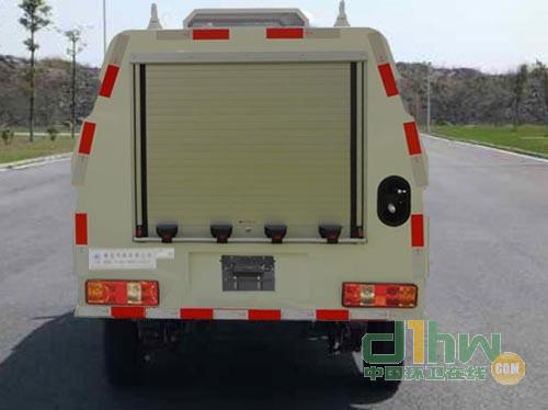 隨底盤選裝后視鏡、前霧燈等.該車用途為路面養護,主要裝置為水箱、水槍等.