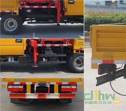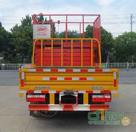 該車用途為搶修電力,通訊,路燈等高空作業。主要裝置為升降平臺,作業臂。隨底盤選裝駕駛室。側,后防護采用材料為Q235,焊接連接;后防護截面尺寸(寬×高)mm:50×180,離地高度400mm。車輛顏色及文字噴涂位置可變化。ABS廠家及型號:襄陽東風隆誠機械有限責任公司/ABS/ASR-24V-4S/4M。