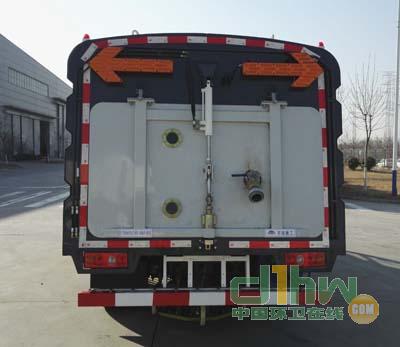 掃路車“中置四盤刷,后置吸嘴”結構布置,副發動機驅動風機及其工作裝置,以吸為主,洗掃結合,濕式除塵,對路面進行清掃作業,采用電液操縱控制,液壓傾翻卸料,具有清掃能力強,清掃寬度大,清掃速度高,吸入粒大,可靠性高,易于操作和維護,作業效率高等特點。