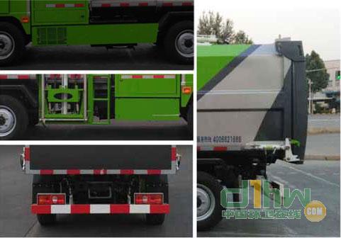 2、為減少污水的灑漏,分別在大廂底部和填裝器底部設有兩處污水箱,前部污水箱用球閥控制其排放,后部污水箱采用橡膠板壓緊,密封性好。箱體與填裝器之間用橡膠密封條密封。避免了污水滲漏造成的二次污染。